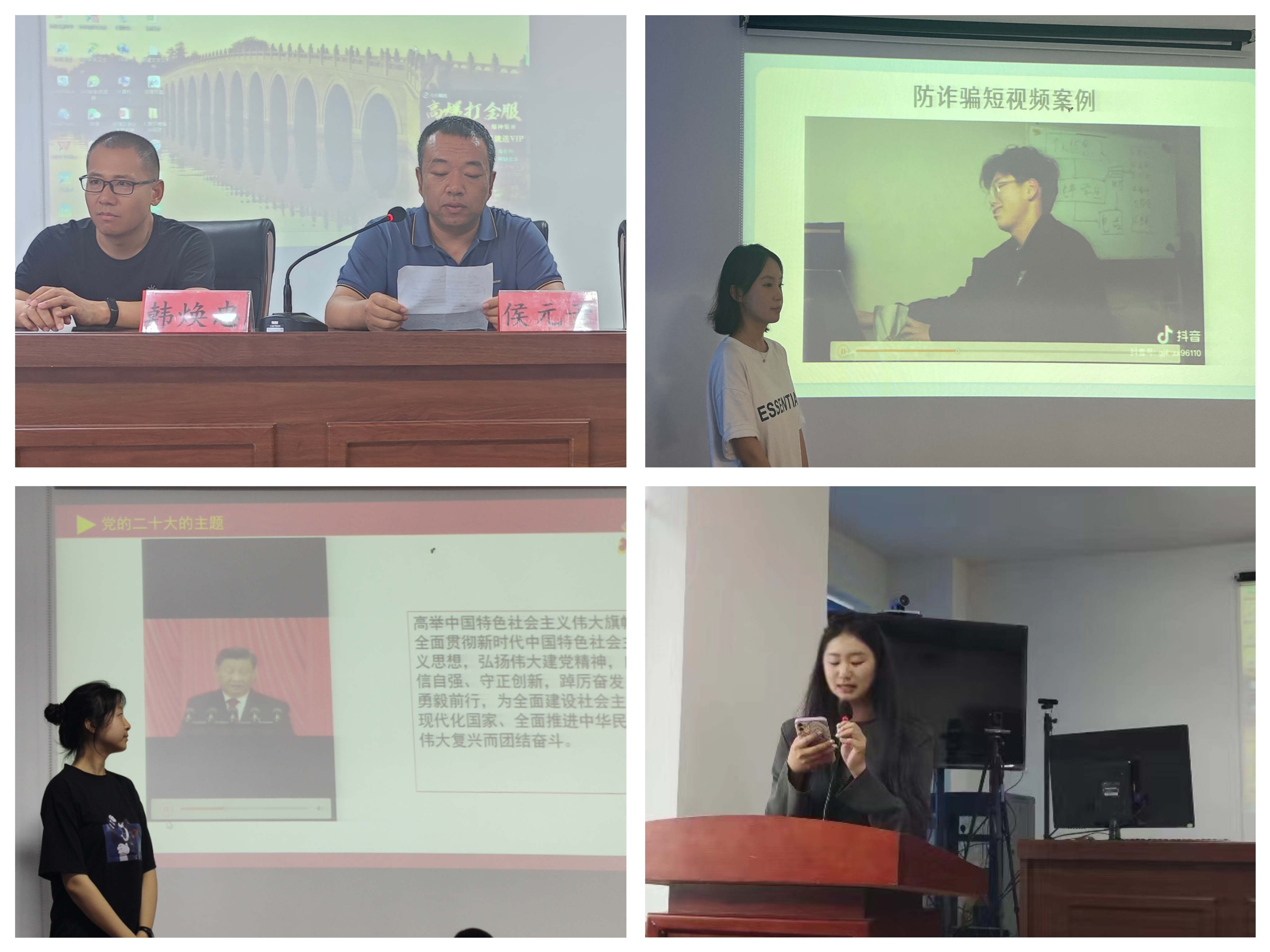 活动伊始,柞岗镇党委副书记侯元子同志对英国上市公司官网365一行人的到来表示热烈的欢迎与真挚的问候,同时对本次活动的开展寄予了殷切的期望。接着,隋雅楠同学围绕“矢志不渝,笃行不怠,不负时代,不负人民”的主题进行了对党的二十大精神理解分享,她表示新时代青年当以青春之我、奋斗之我,把成长的根深深植入祖国的沃土,以实际行动助力乡村振兴。杨娟同学用慷慨激昂的语调朗诵了诗歌——《永远跟党走》,铿锵有力的话语更坚定了其跟党走的信念。姚美娇同学结合驻地历史案件和村民实际情况,围绕民事纠纷、非法集资、未成年人保护、电信网络诈骗等村民关注的重点热点问题开展普法宣讲。